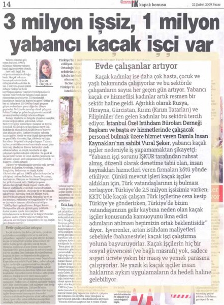 Hürriyet Gazetesi Hürriyet İK eki evde çalışanlar ve kaçak kadınlarla ilgili İOİBD Başkanı Vural Şeker'in görüşlerine yer veriyor. - 02.09'08Adım Adım Çocuğum - TV 8